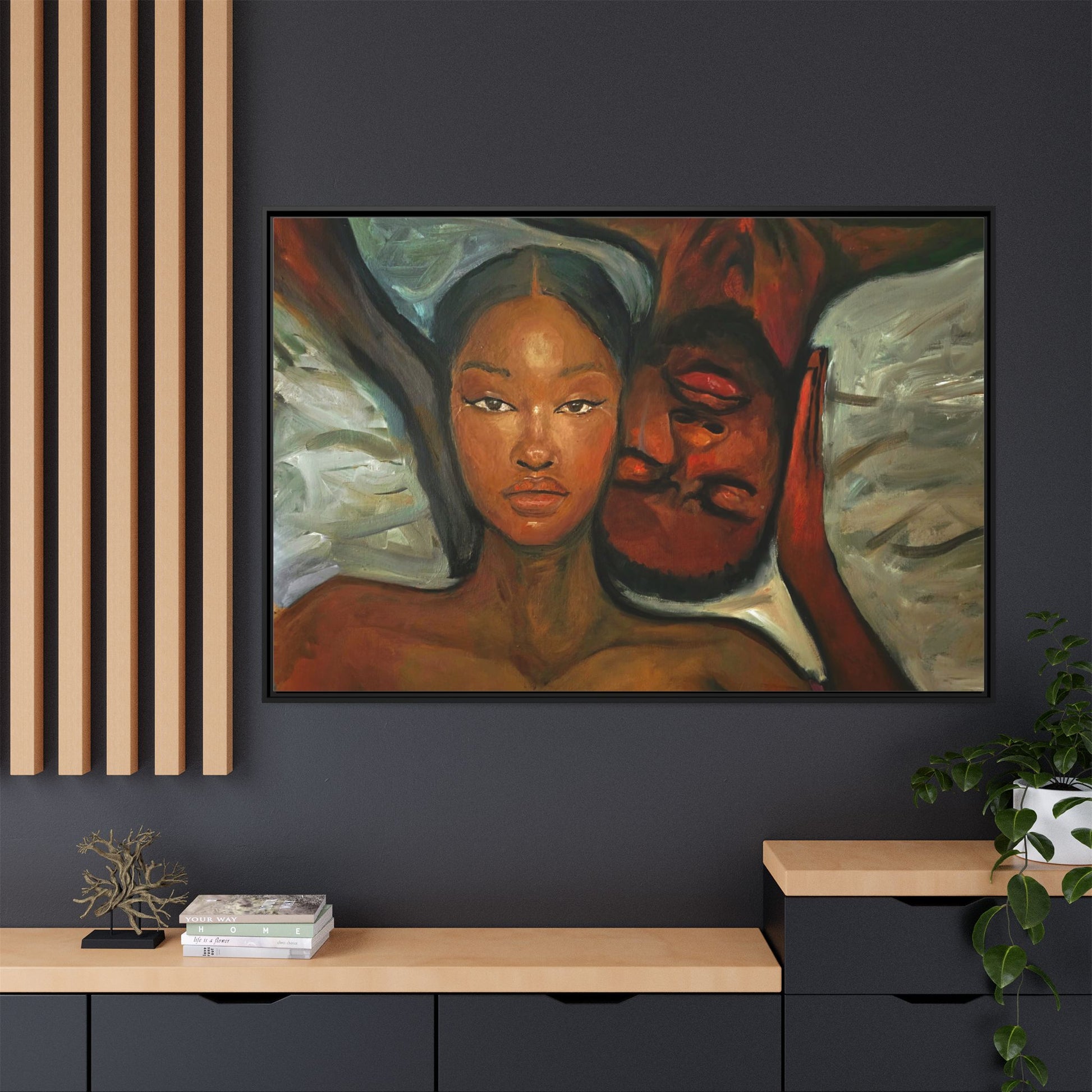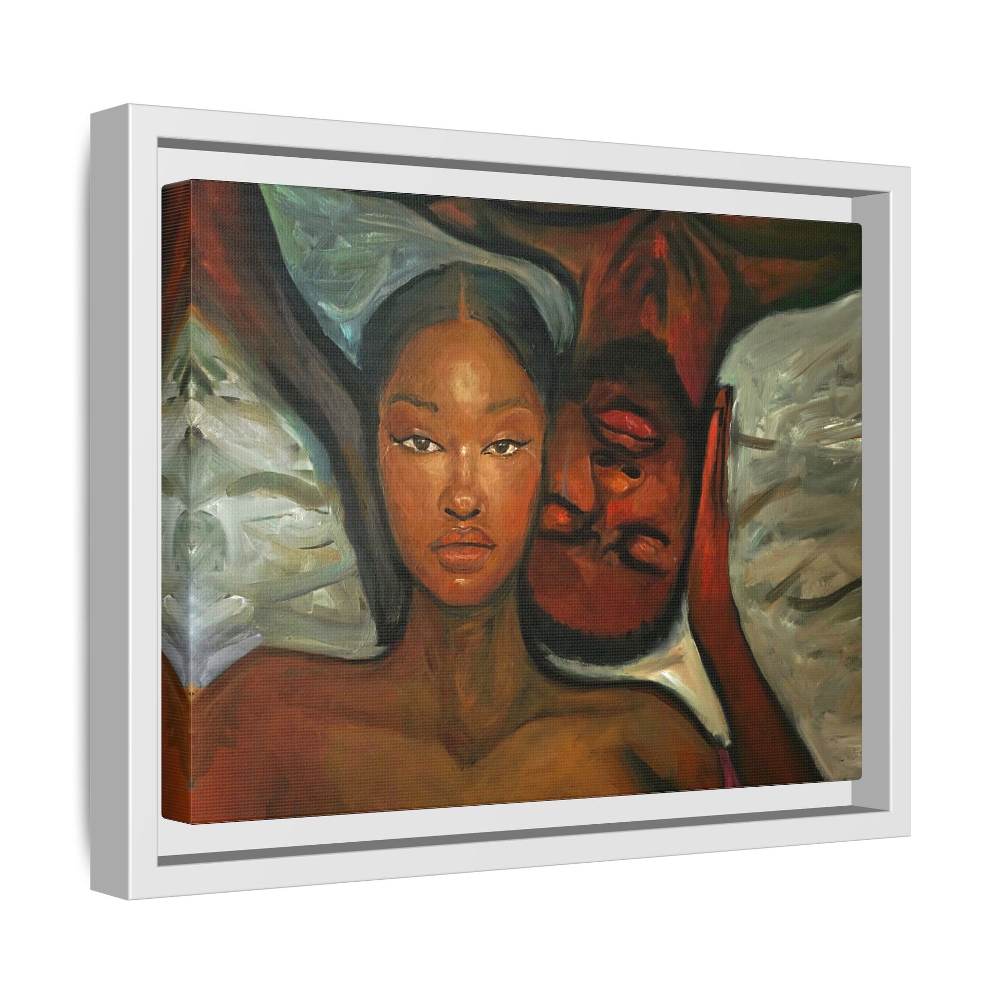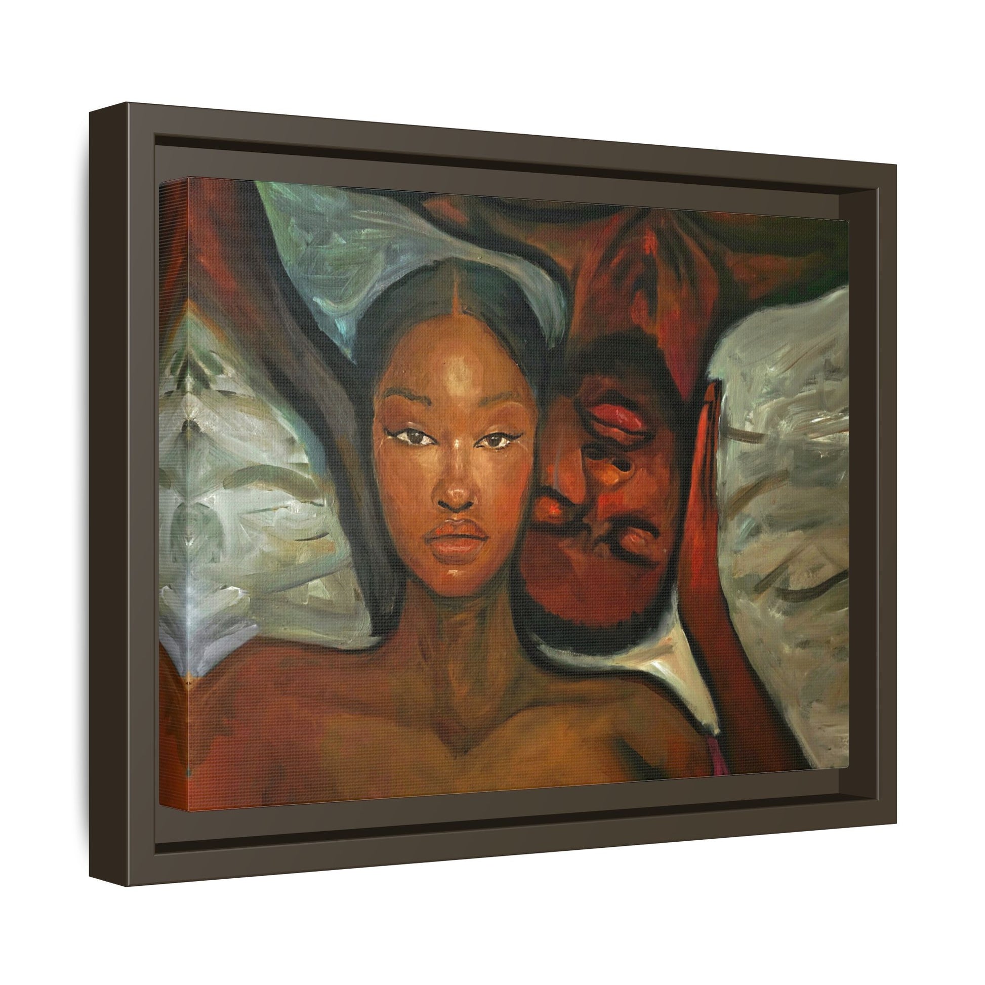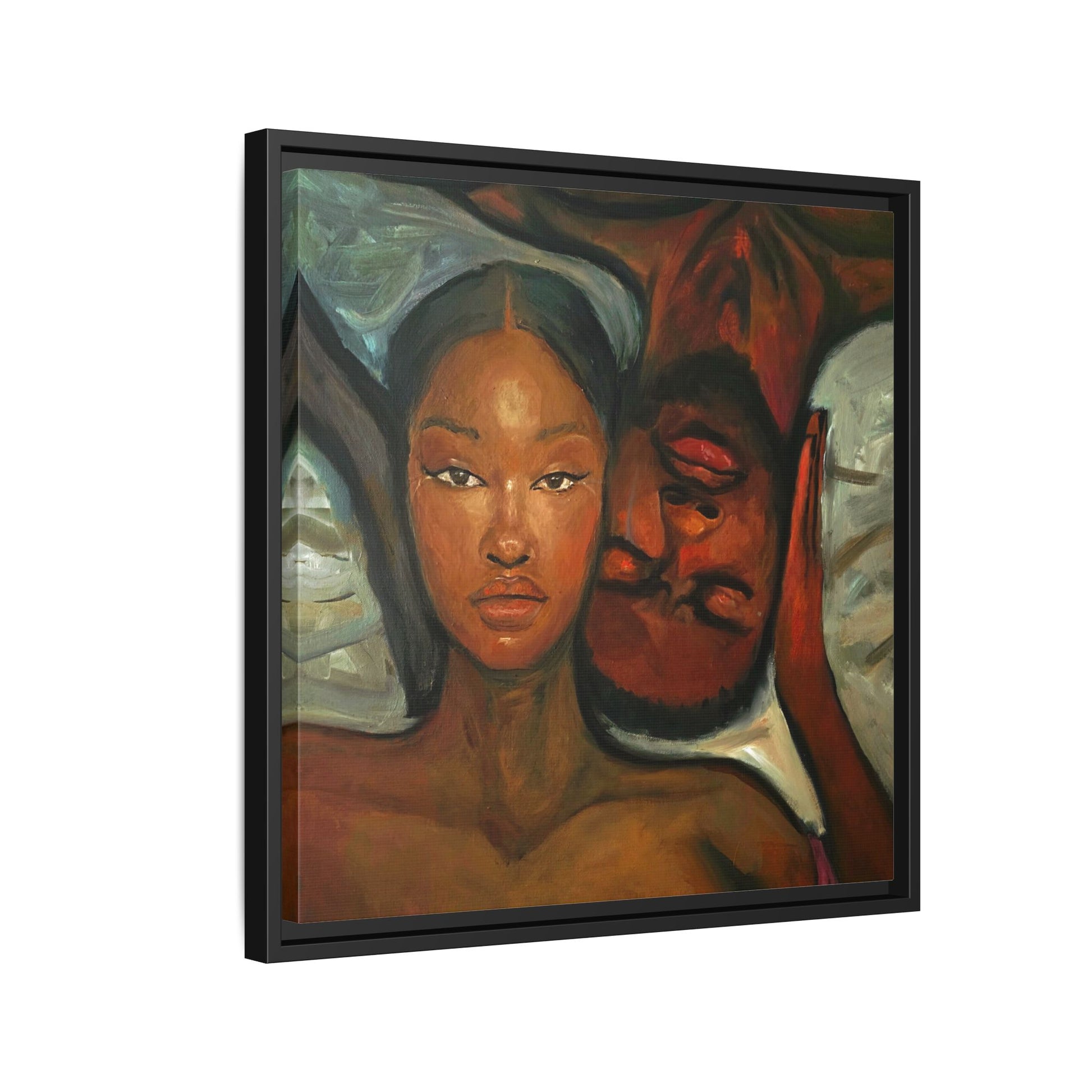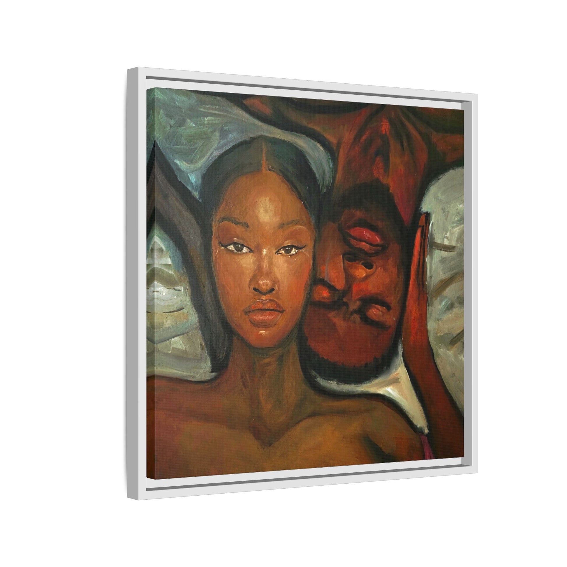 A emotional oil painting with a man and woman laying in bed, perfect for adding a touch of emotion and art to your space. This canvas print is ideal for art lovers and individuals looking to bring unique artwork into their homes. Great for gifting on Valentine's Day, anniversaries, or as a housewarming present.